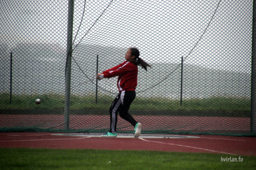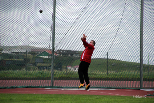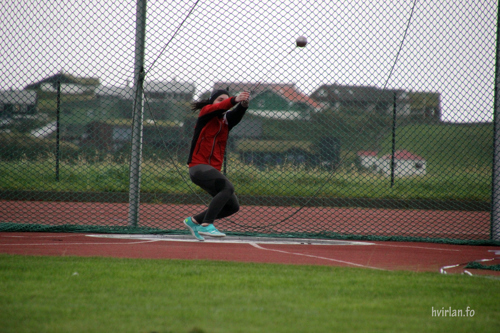 Samstundis sum Jógvan Ingi kastaði, royndu Ai Waagstein og Elin Johnsdóttir seg við 4,0 kg tunga kvinnuhamaranum. Ai, sum einamest kastar spjót, byrjaði við at kasta hamaran út á 20,07 m. Elin hugsavnar seg um hamarkast, er meir von við at kasta 3,0 kg tunga hamaran, men hon legði út við at kasta 4,0 kg tunga hamaran út á 32,80 m. Ai legði góðan 1½ m afturat í øðrum umfarið, meðan Elin ikki fekk tað heilt at rigga. Báðar royndu at koma longur, men tað var bara Ai, sum megnaði hetta. Hon legði í síðsta umfarið enn ein metur afturat og kom harvið út á 22,71 m. Elin ognaði sær harvið gullmerkið frammanfyri Ai.