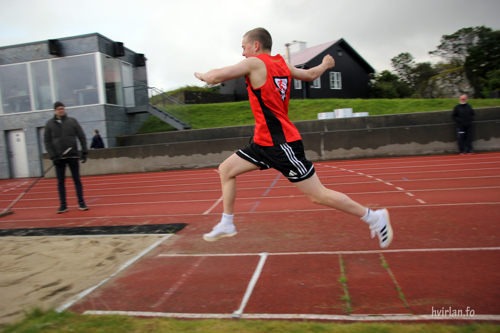 Arni Bartal, sum kom beint frá rimarenning, legði út við einum lopið uppá 8,41 m, sum er neyvt tveir metrar frá hansara persónliga metið. Hann økti í øðrum til 9,78 m, og eftir at hava gjørt eina roynd afturat valdi hann at pakka saman, fyri at spara beinini til nógvu greinarnar komandi dagarnar. Hann fekk tó tvey gullmerkið fyri innsatsin. Eitt fyri at vinna FM og eitt fyri at vinna FMU.